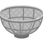 貝をザルの上に乗せ、水中の中でふるうと砂や泥だけを落とすためのザルです。
